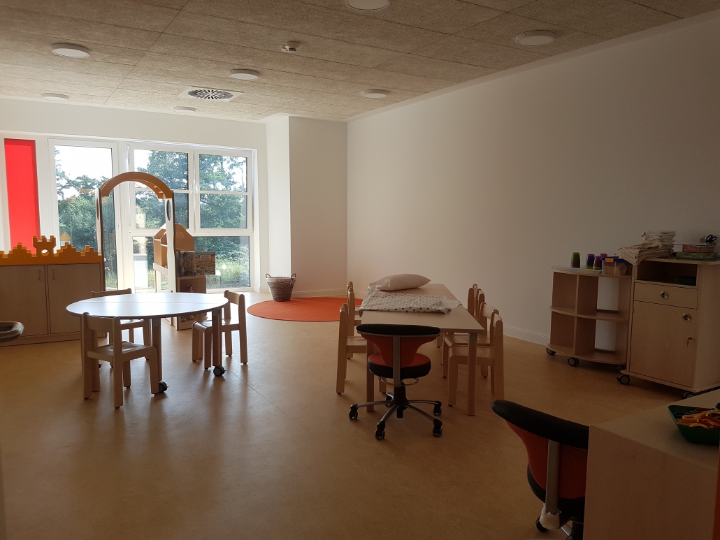 Neubau einer 6-gruppigen Kindertageseinrichtung für 90 Kinder als 2-geschossiges Gebäude mit 3 Krippenbereichen im Erdgeschoss und 3 Gruppenbereichen im Obergeschoss.